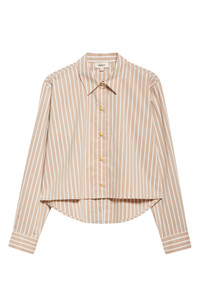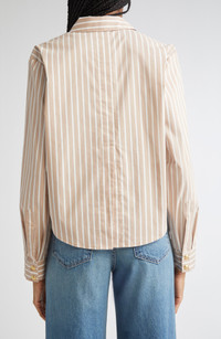 A classic striped button-up gets a modern refresh with a golden-snap placket and a high-low hem that gives it a cropped look from the front. Front snap closure Point collar Long sleeves with two-snap cuffs High-low hem 72% organic cotton, 25% polyester Dry clean Imported