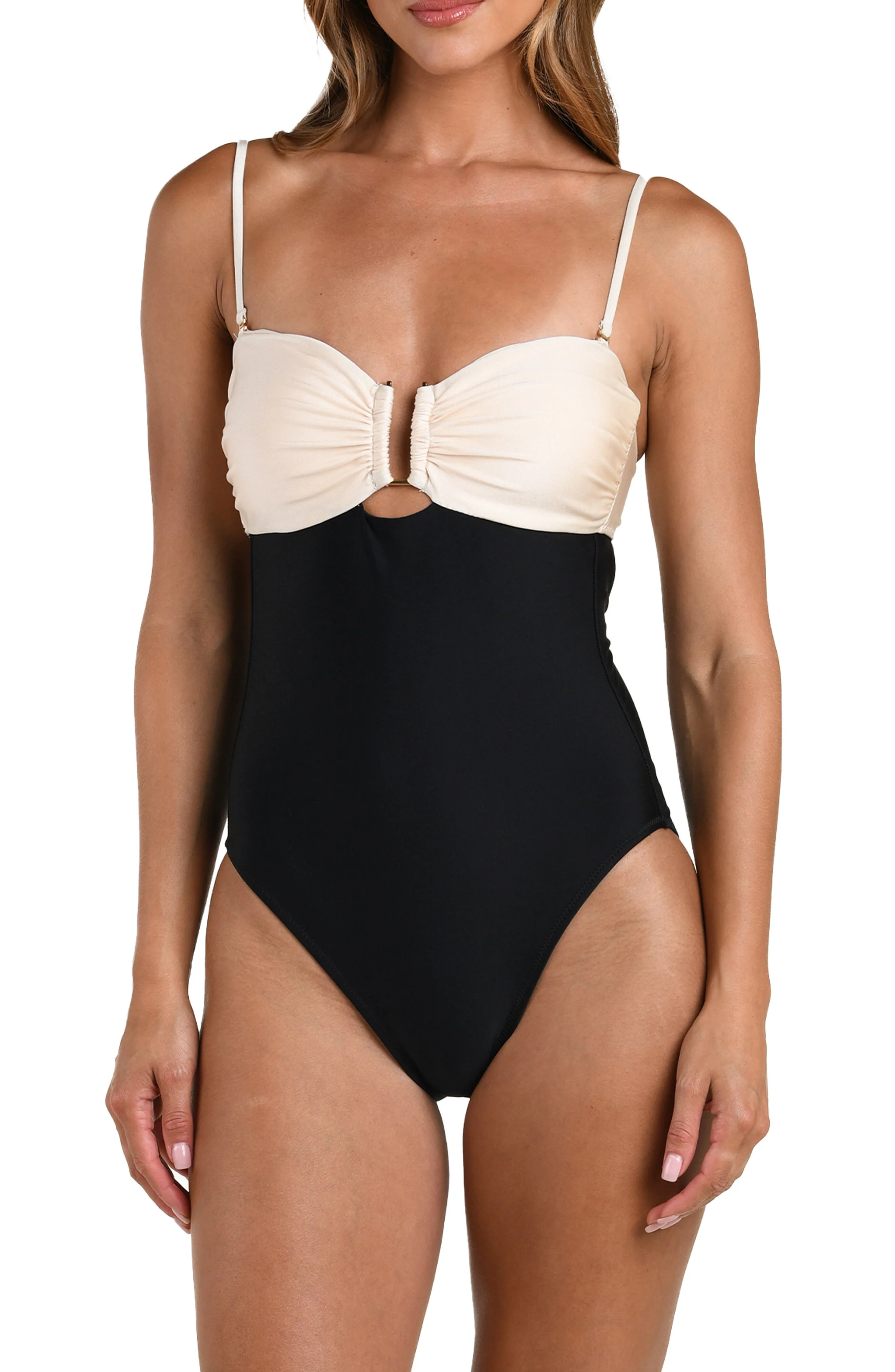 L'AGENCE Emilia Colorblock Bandeau One-Piece Swimsuit in Black at Nordstrom