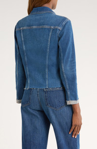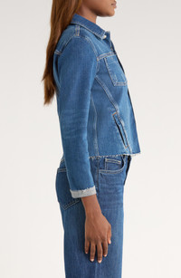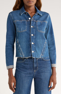 L'AGENCE Janelle Slim Fit Raw Hem Denim Trucker Jacket in Authentique at Nordstrom