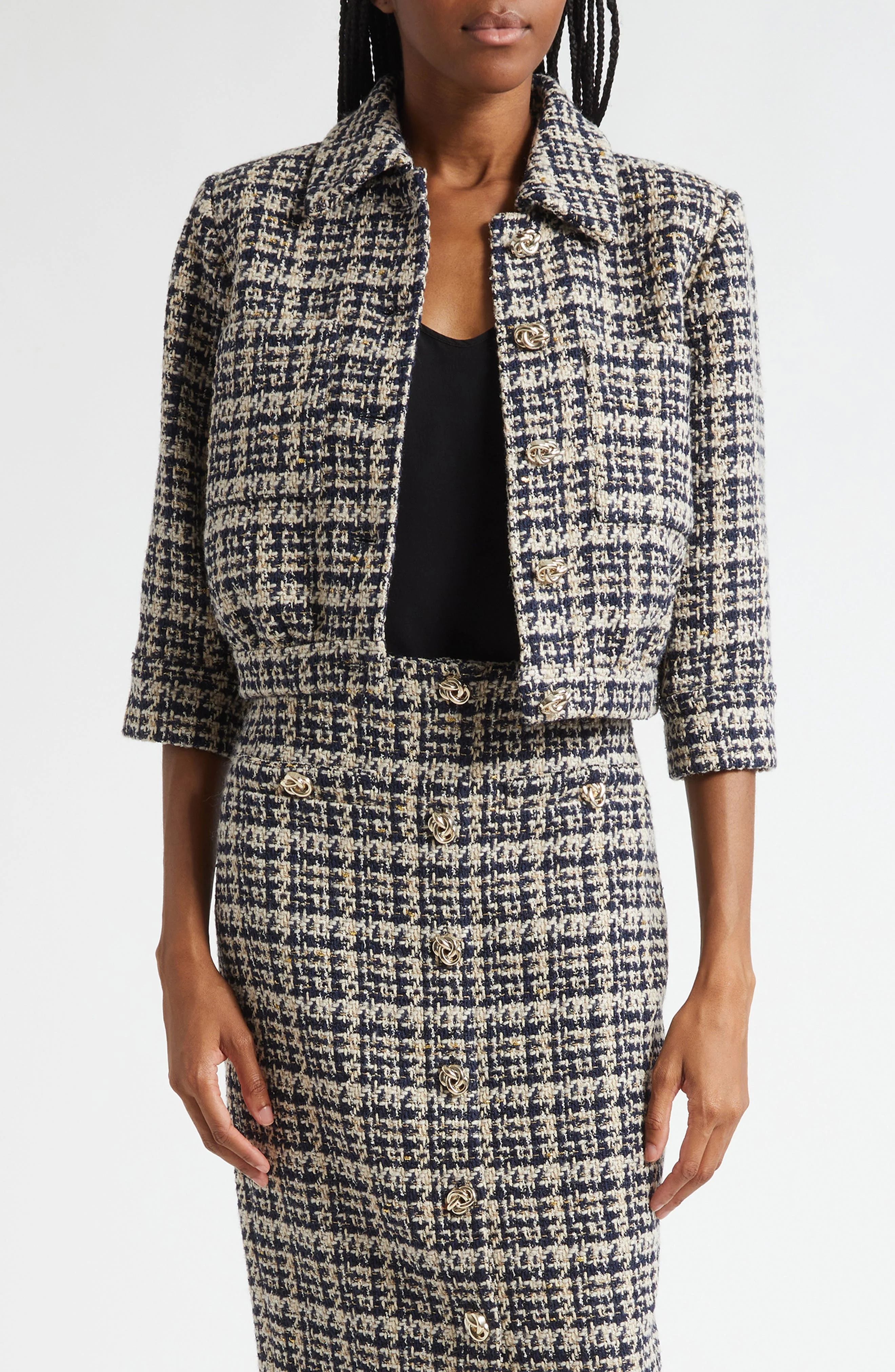L'AGENCE Jia Crop Tweed Jacket in Midnight Multi Tweed at Nordstrom