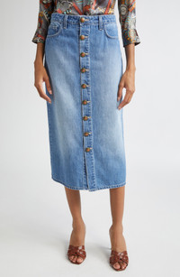 L'AGENCE Kathleen Button Front Midi Denim Skirt in Bandera at Nordstrom