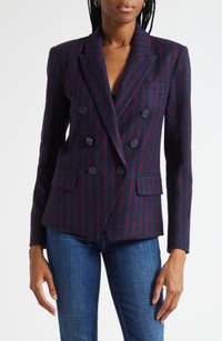 L'AGENCE Kenzie Double Breasted Knit Blazer in Midnight/Red Pinstripe at Nordstrom