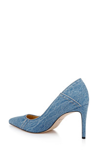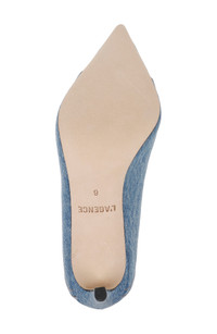 Decorative seams and a faded denim upper bring street-savvy dimension to a pointy-toe pump set on a cushioned footbed and sleek stiletto heel. 3 1/2" heel Memory foam cushioning Cotton upper/leather lining and sole Imported