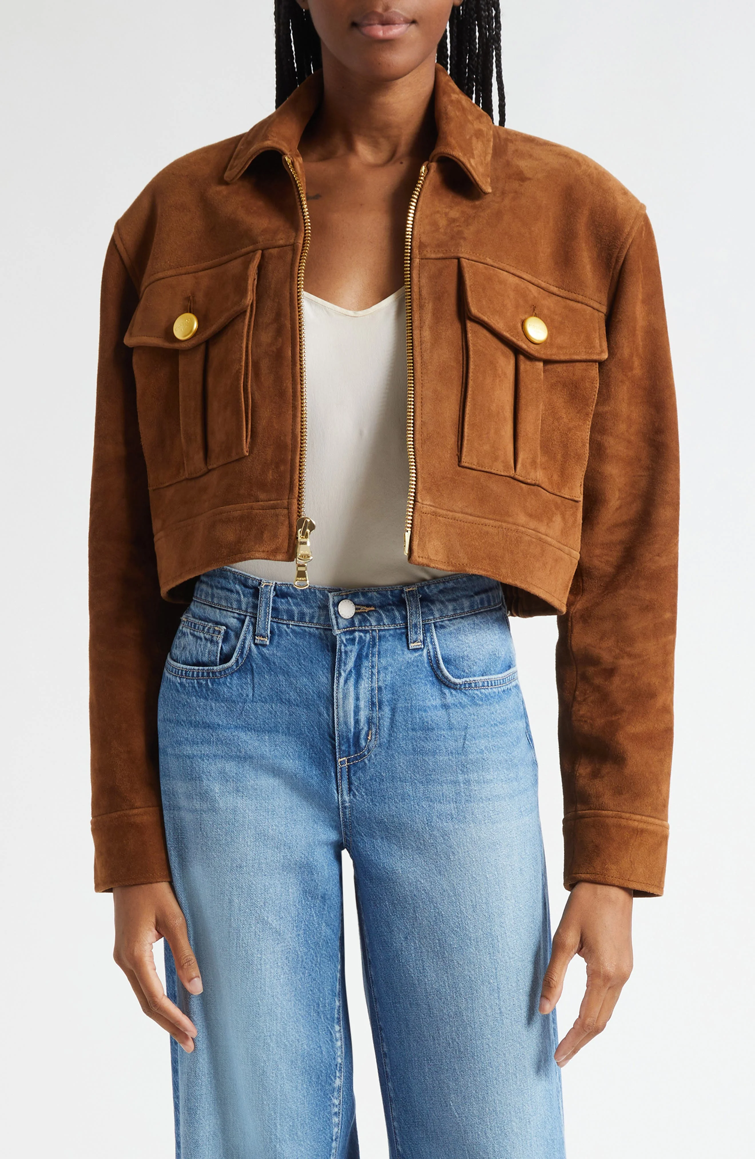 L'AGENCE Micah Suede Crop Jacket in Walnut at Nordstrom