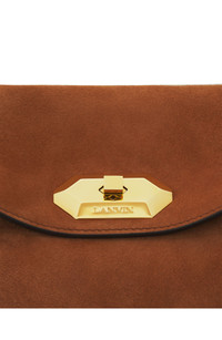 The Compagnon Bag is designed to keep you company when you’re on the go and protect your precious moments. Its three compartments provide optimum organization and make it easy to quickly find your most precious items. The envelope-inspired design is a true symbol of confidence. The asymmetrical design is enhanced by topstitched bands that highlight the initials J and L, which stand for Jeanne Lanvin, adding a touch of understated, timeless elegance. The inside of the bag features a Lanvin blue smooth leather lining with a contrasting leather slit, delicately embossed with the Lanvin logo and completed with an elegant gold mirror with refined lines. Compagnon Asymmetrical Suede Bag Clasp Inspired By The Lanvin Hexagonal Label Interior Mirror J- And L-Shaped Topstitched Side Bands Leather Lining Made In Italy