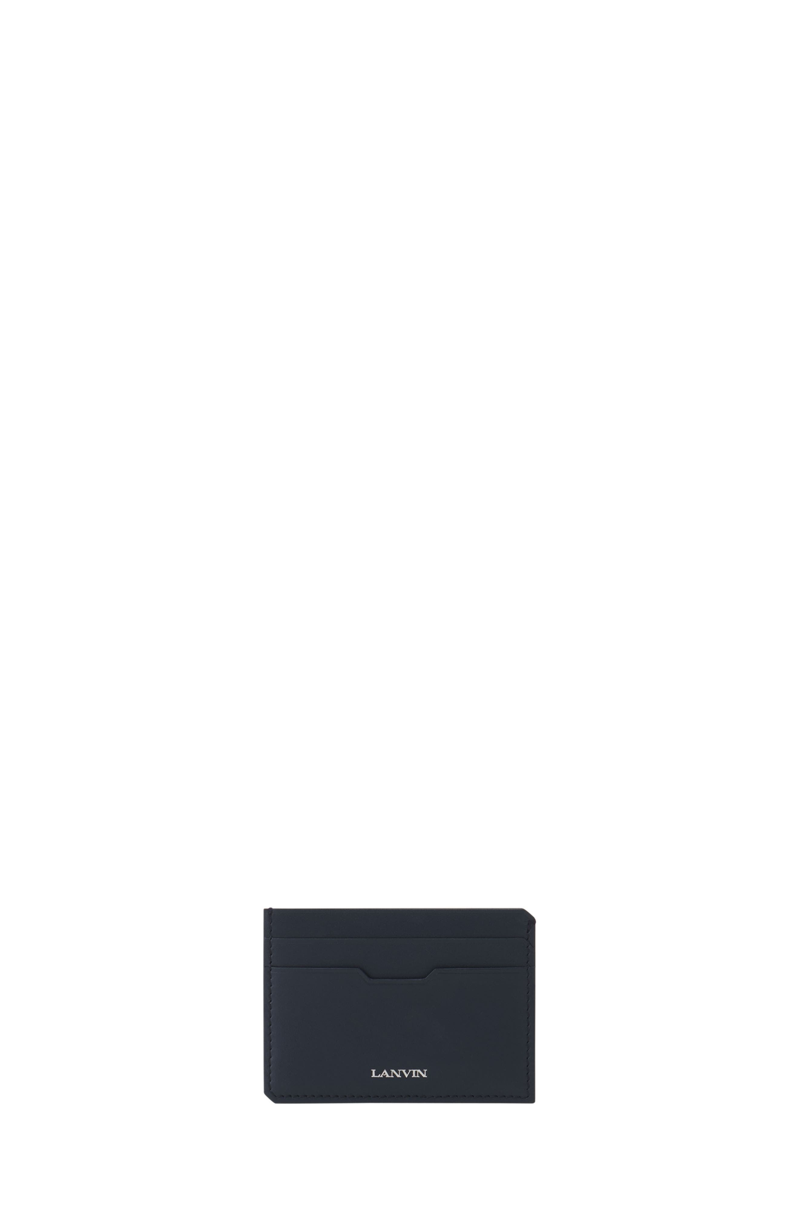 The Compagnon line of small leather goods is distinguished by its modern design and asymmetrical shape. This elegant leather cardholder reflects the House's elegant, minimalist codes. Compagnon Leather Card Holder Three Card Slots Embossed Silvery Lanvin Logo Made In Italy