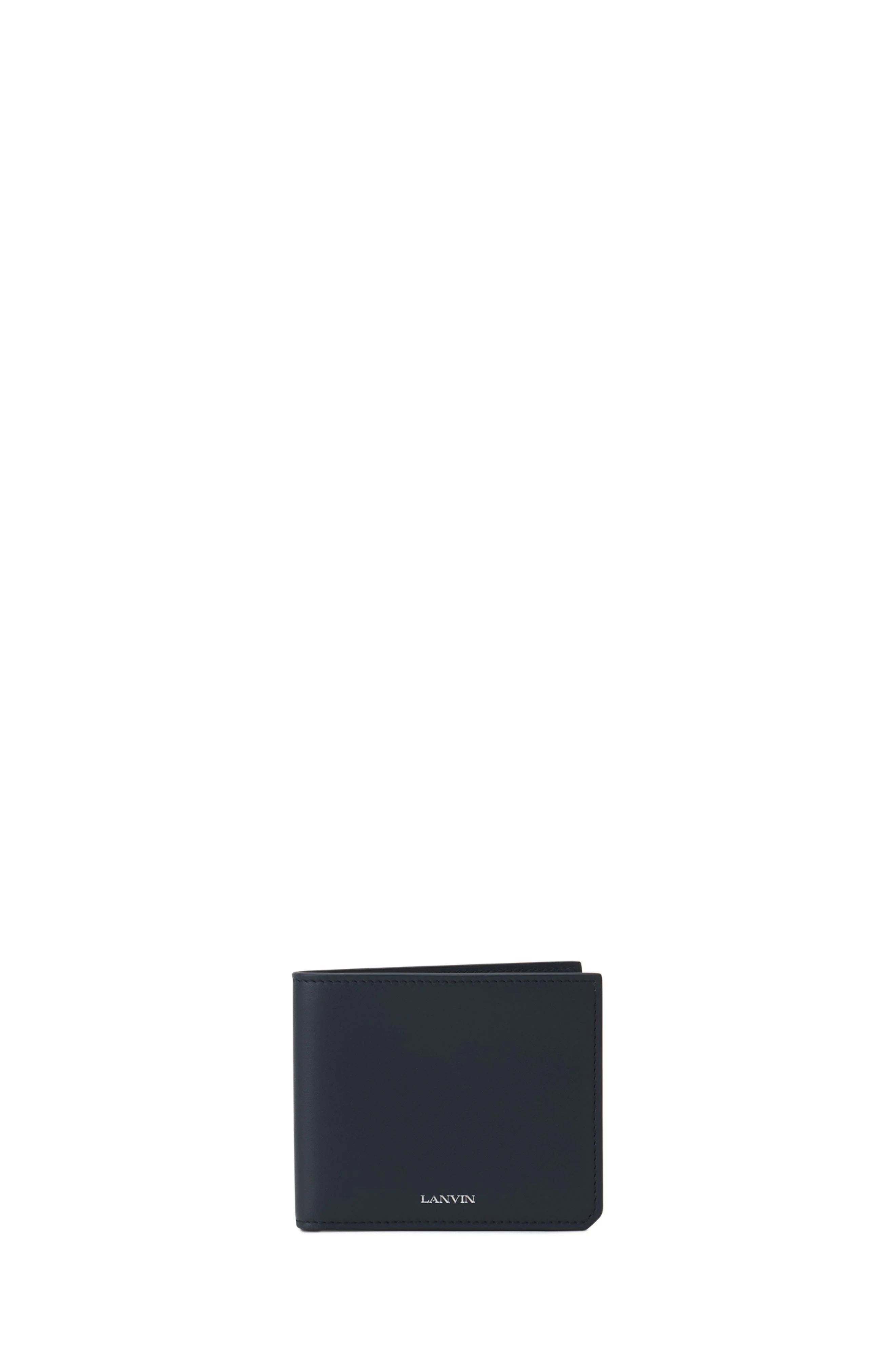 The Compagnon line of small leather goods is distinguished by its modern design and asymmetrical shape. This elegant leather wallet takes up the House's minimalist codes. Compagnon Leather Wallet Eight Slots For Cards Ticket Compartment Lanvin Logo Embossed Inside And Out Made In Italy