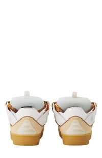 The Curb sneaker is a tribute to the skating community of the 90s. It embodies several of Jeanne Lanvin's signatures. Contrast, with the interplay of materials, textures and colors. The Ribbon, with oversized laces, symbolizing the union between mother and daughter. The Circle, with rounded lines inspired by Art Deco architecture. These sneakers have a side seam to ensure durability, good insulation from the cold and damp, and greater flexibility. This season, the Studio offers new color combinations, with hand-painted leathers. Curb leather sneakers Almond toe Double herringbone woven laces, made in Greece Quilted tongue with the Lanvin label and an embossed Mother and Child Daughter logo Made in Portugal