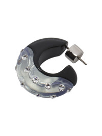 Drawing their inspiration from the 70s, these earrings embody one of the House's signatures, Contrast. They combine high-gloss metals with the transparency of Plexiglas with rhinestones. Fargo rhinestone large hoop earrings Bi-material resin with crystals and metal Lacquer and rhinestone finish Push button ring clasp Made in Italy