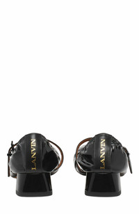 The Ballerina has been the House's signature shoe since the early 2000s. This collection features the Mary Jane version, a strapped pump with a small heel that combines elegance and comfort, perfect for a casual chic look.| Ballerina Mary Jane in glossy leather with heels Round toe Square flared heel Adjustable strap Tone-on-tone leather back pull tab with an embossed Lanvin logo Leather insole featuring a sewn Lanvin label Made in Italy Outer main material : ,100% calf promigenius taurus Lining : 100% goatskin This style fits true to size, you may take your usual size. The size displayed corresponds to a French size