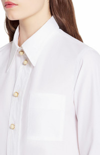 Details Long sleeve shirt in poplin Color: optic white Long sleeve, slim fit, shirt in crisp cotton poplin. Perfect underpinning style. The shirt is embellished with custom made hand stitched buttons. Made in france Composition Main material: 100% cotton Long sleeve shirt in poplin Color: optic white Long sleeve, slim fit, shirt in crisp cotton poplin. Perfect underpinning style. The shirt is embellished with custom made hand stitched buttons. Made in france Composition