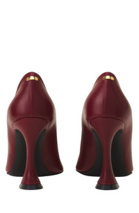 The Midnight Step bow pump in leather embodies simplicity and refinement. The sleek, contemporary design echoes the lines of a subtly daring neckline, complete with a curved heel that is both stable and lightweight. The insole is hot-stamped with the House's signature in gold. This precious and elegant creation makes every step a gesture filled with character. Midnight Step Leather Bow Pumps Plunging Neckline Straight Leather Bow On The Front Lanvin Logo Hot-Stamped In Gold Lanvin Blue Padded Insole Gold Metal Label With The Lanvin Logo On The Back 10 Cm Heel