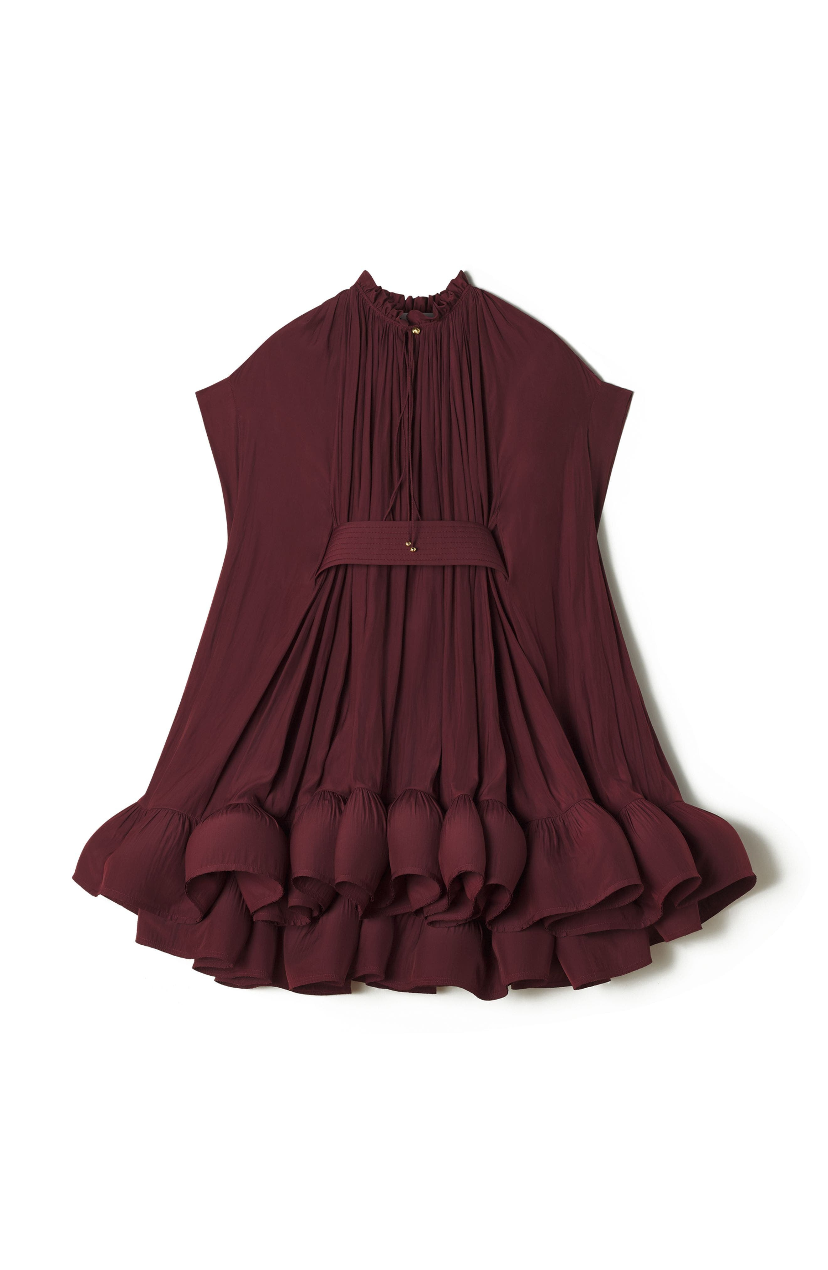 The pleats and frills of this dress create a fluid and elegant movement, embodying the intrinsic femininity of the Lanvin wardrobe. Short Sleeve Dress In Charmeuse With Bottom Ruffles And Fitted Waist. The Dress Features A Topstitched Belt And Presents A Generous Volume For A Glamorous And Floaty Look. Made In Slovakia.