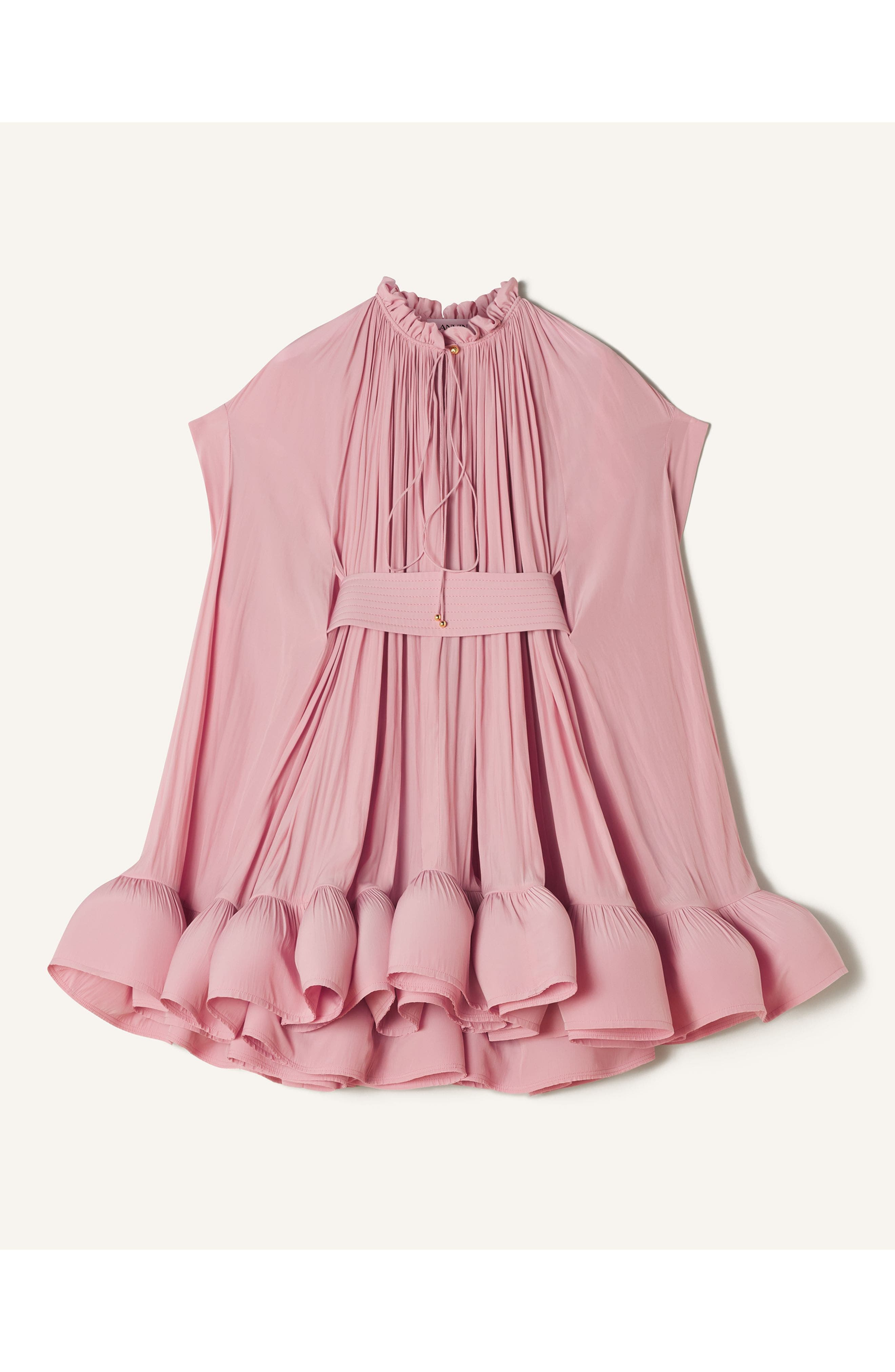 The pleats and frills of this dress create a fluid and elegant movement, embodying the intrinsic femininity of the Lanvin wardrobe. Short Sleeve Dress In Charmeuse With Bottom Ruffles And Fitted Waist. The Dress Features A Topstitched Belt And Presents A Generous Volume For A Glamorous And Floaty Look. Made In Slovakia.
