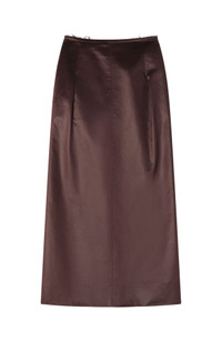 This skirt is crafted from fabric with a satin finish to create a soft, shiny effect. The back slit ensures ease of movement and is embellished with snap buttons. The elegant cut makes it the perfect choice for a sophisticated and feminine evening outfit. Straight Midi Skirt In Satin Fabric Snap Button Back Slit . Zipped Back Closure Two Side Pockets Made In Italy