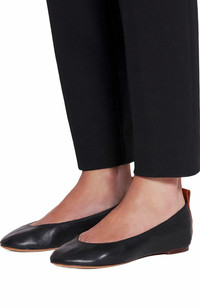 The 2023 Winter collection features the return of a Lanvin icon: the Ballerina Flat, a signature shoe of the House since the beginning of the 2000s.Combining elegance, simplicity and comfort, the essential Ballerina Flat is the perfect shoe for a “casual chic” look. The round-toe Ballerina Flat in soft nappa lambskin leather. 1 cm (0.39 inches) flat heel Tone-on-tone leather tab on back with embossed Lanvin logo. Lanvin label stitched on leather insole. Made in Italy
