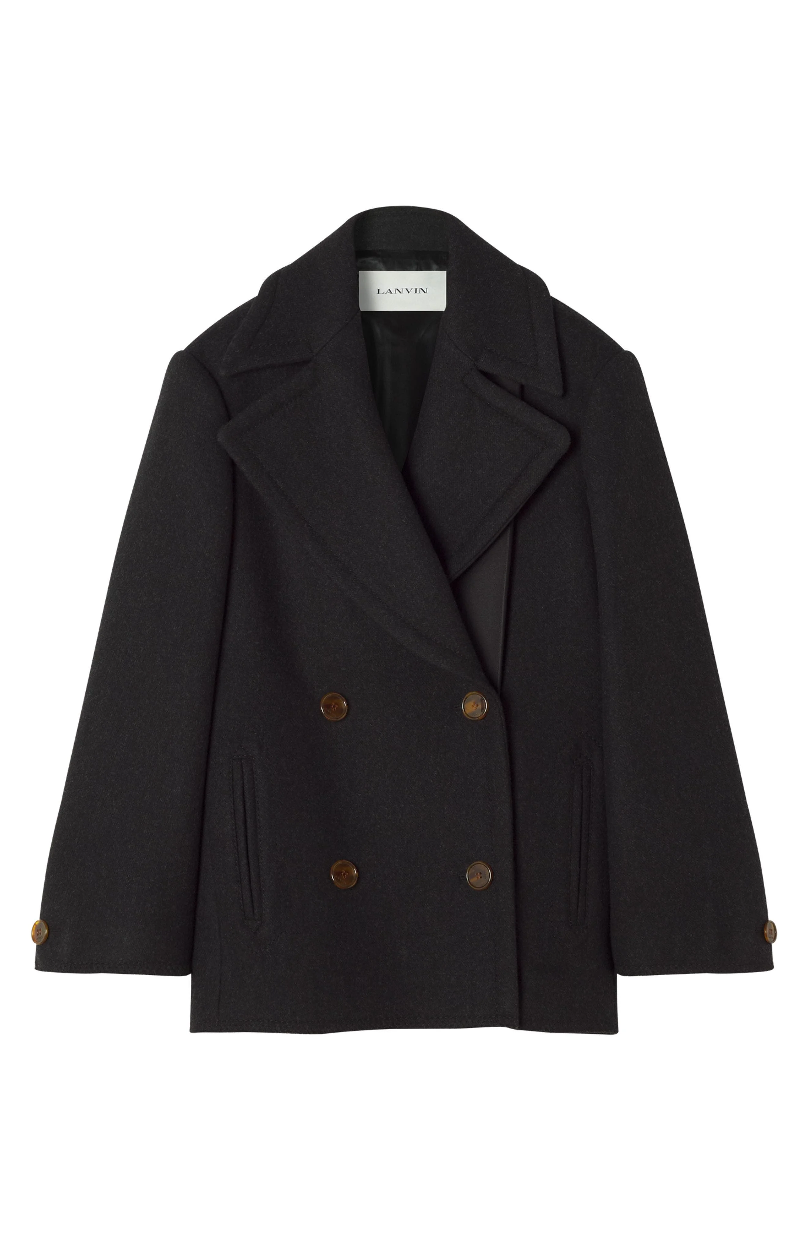 This peacoat is crafted from Australian virgin wool, an elegant and timeless fabric. It embodies the vision of the Maison Lanvin and its passion for traditional tailoring. Featuring a loose, short fit, this peacoat pairs perfectly with a daytime outfit. Straight Peacoat In Compact Mottled Virgin Wool Loose Fit Lapel Collar Wide Shoulders Double-Breasted Button Closure Satin Yoke At Front .