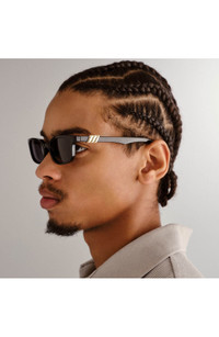 Lenses tinted in a dark, smoky hue lend a mysterious touch to these rectangular sunglasses that embody the minimalist vibe of the '90s. 51mm lens width; 19mm bridge width; 145mm temple length 100% UV protection Ecozen T110 plastic Imported