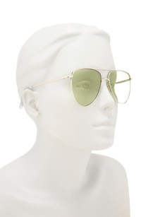 An innovative flat lenses and sleek metal temples elevate retro-cool aviator sunglasses fitted with adjustable nose pads for secure wear. 57mm lens width; 16mm bridge width; 145mm temple length 100% UV protection Adjustable nonslip nose pads Metal Imported