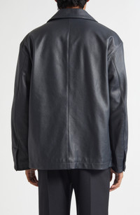 From runway glare to daily rotation, this featured jacket holds shape without stiffness. Thick, richly grained calfskin leather moves with the wearer and feels indulgent to the touch. A cotton lining keeps things breathable and ample front pockets nod to workwear purpose done the Lemaire way. Front button closure Spread collar Chest on-seam pockets; front patch pockets Cotton lining Leather Professional leather clean Made in Turkey Designer Clothing