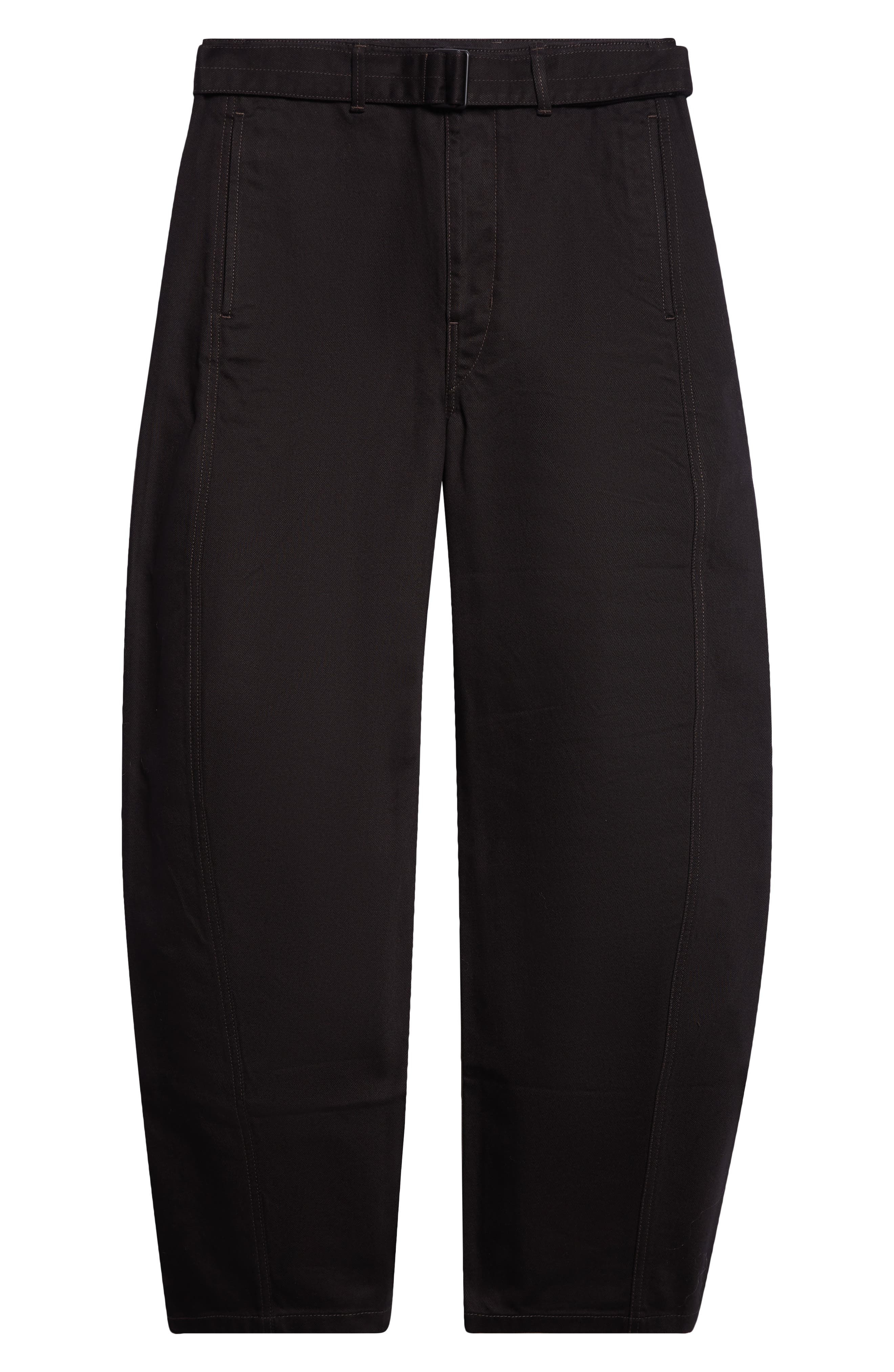 The label's minimalist, practical designs inspired by Japanese culture and workwear inform these runway-featured jeans made from garment-dyed denim with twisted side seams that give the style its curved shape. Zip fly with hook-and-bar closure Side welt pockets; back patch pockets Removable belt 100% cotton Dry clean or machine wash, line dry Imported Designer Clothing