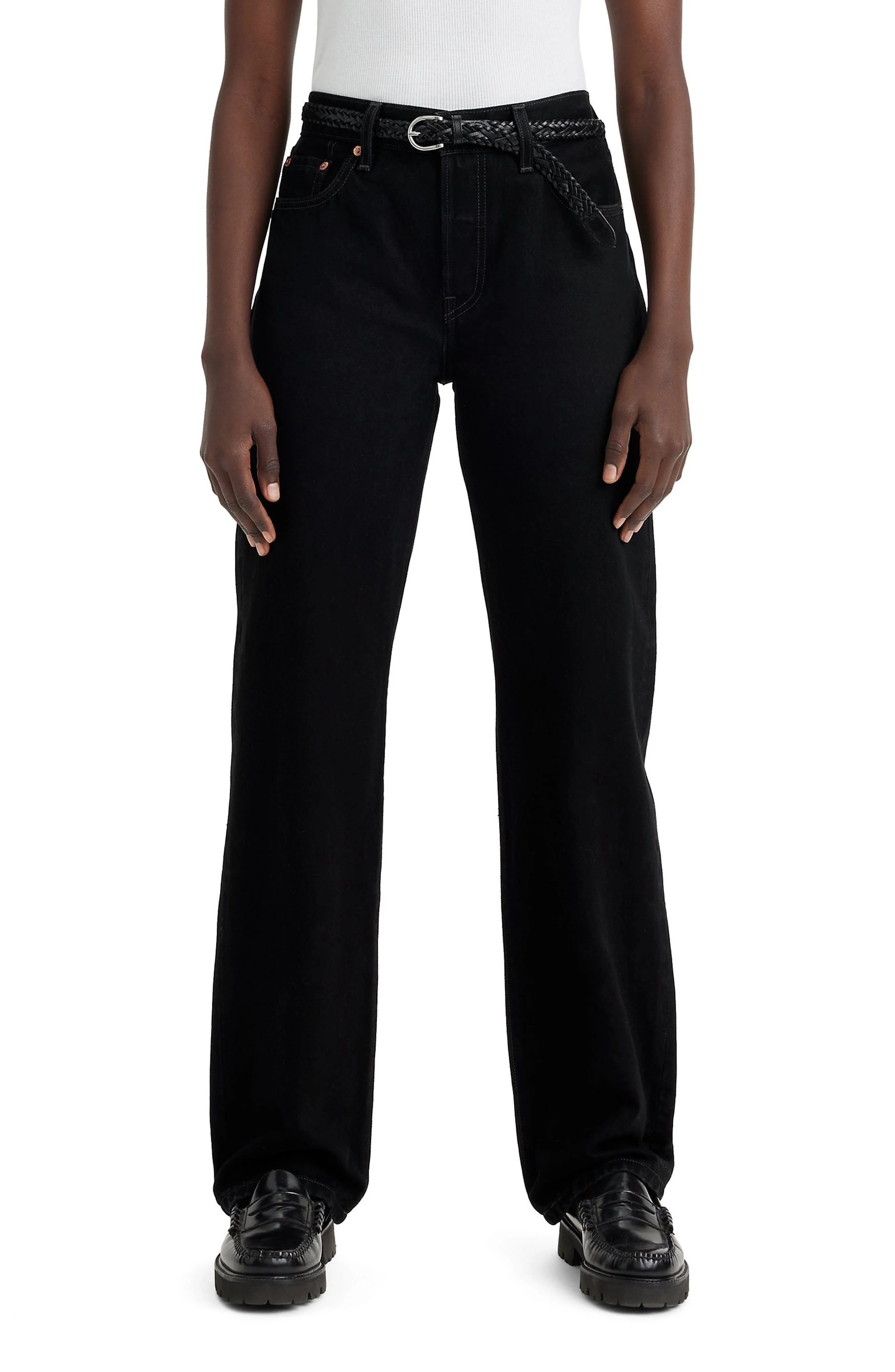 A beloved jeans style comes through in inky black nonstretch denim and a straight-leg silhouette. 32" inseam; 16 1/2" leg opening; 10 1/2" front rise; 16 1/2" back rise Zip fly with button closure Five-pocket style 100% cotton Machine wash, tumble dry Imported