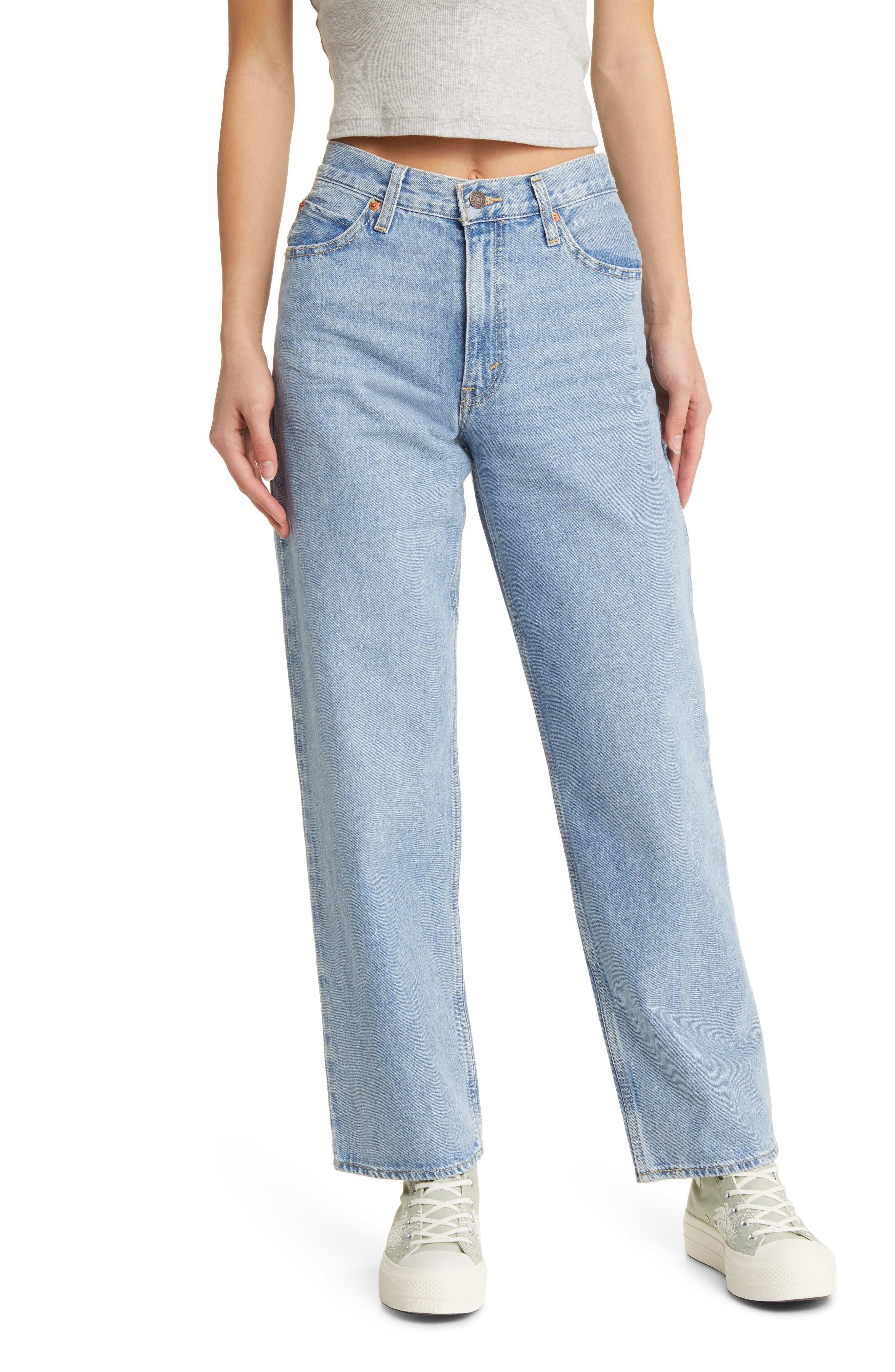 This take on '90s dad jeans is cut from light-wash nonstretch denim in a baggy straight-leg fit with extra room for a modern edge. 17" leg opening; 11" front rise; 15 1/2" back rise (size 29x30) 100% cotton Dry clean or machine wash, tumble dry Imported