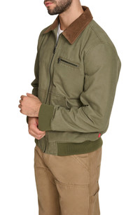 This durable twill jacket combines bomber and Western influences, with a corduroy collar, rib trim and a curved back yoke for signature Levi's style. 26 1/2" length Front zip closure Spread collar Chest zip pocket; split kangaroo pocket Lined 100% cotton Machine wash, tumble dry Imported