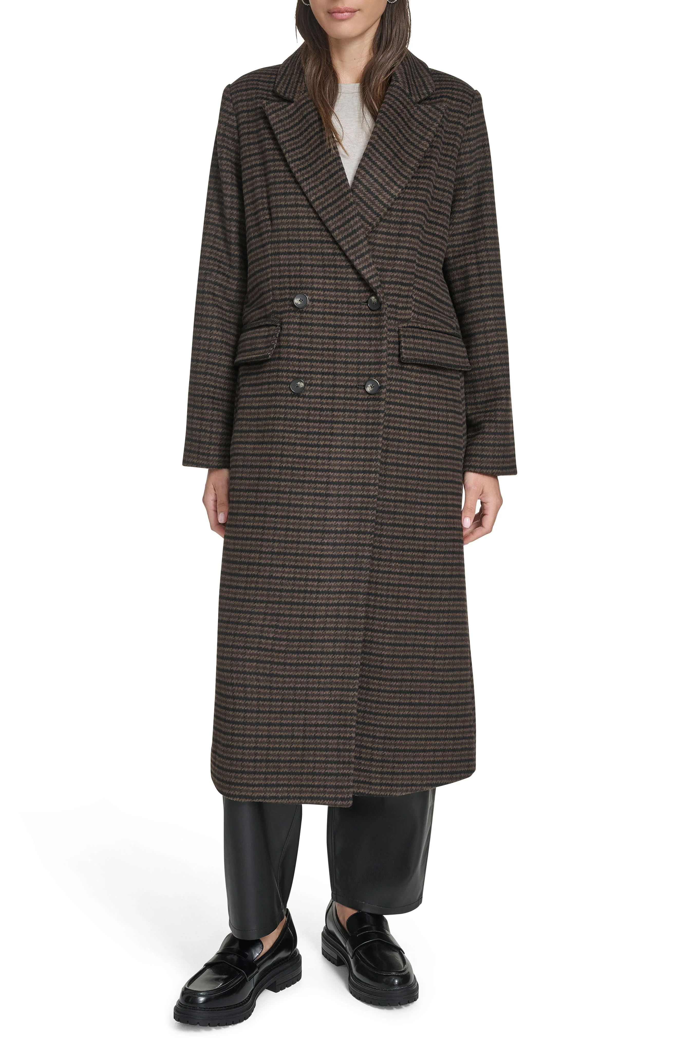 Polish lots of looks with a double-breasted coat cut to a longer length for extra warmth. Double-breasted button closure Notched lapels Front flap pockets; interior pocket Back vent Lined 93% polyester, 6% acrylic, 1% other fibers Machine wash, tumble dry Imported