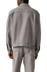 A roomy fit and a dusky fade animate a sturdy trucker cut form nonstretch denim. Front button closure Spread collar One-button cuffs Chest button-flap patch pockets; front welt pockets Adjustable button side tabs 100% cotton Machine wash, tumble dry Imported