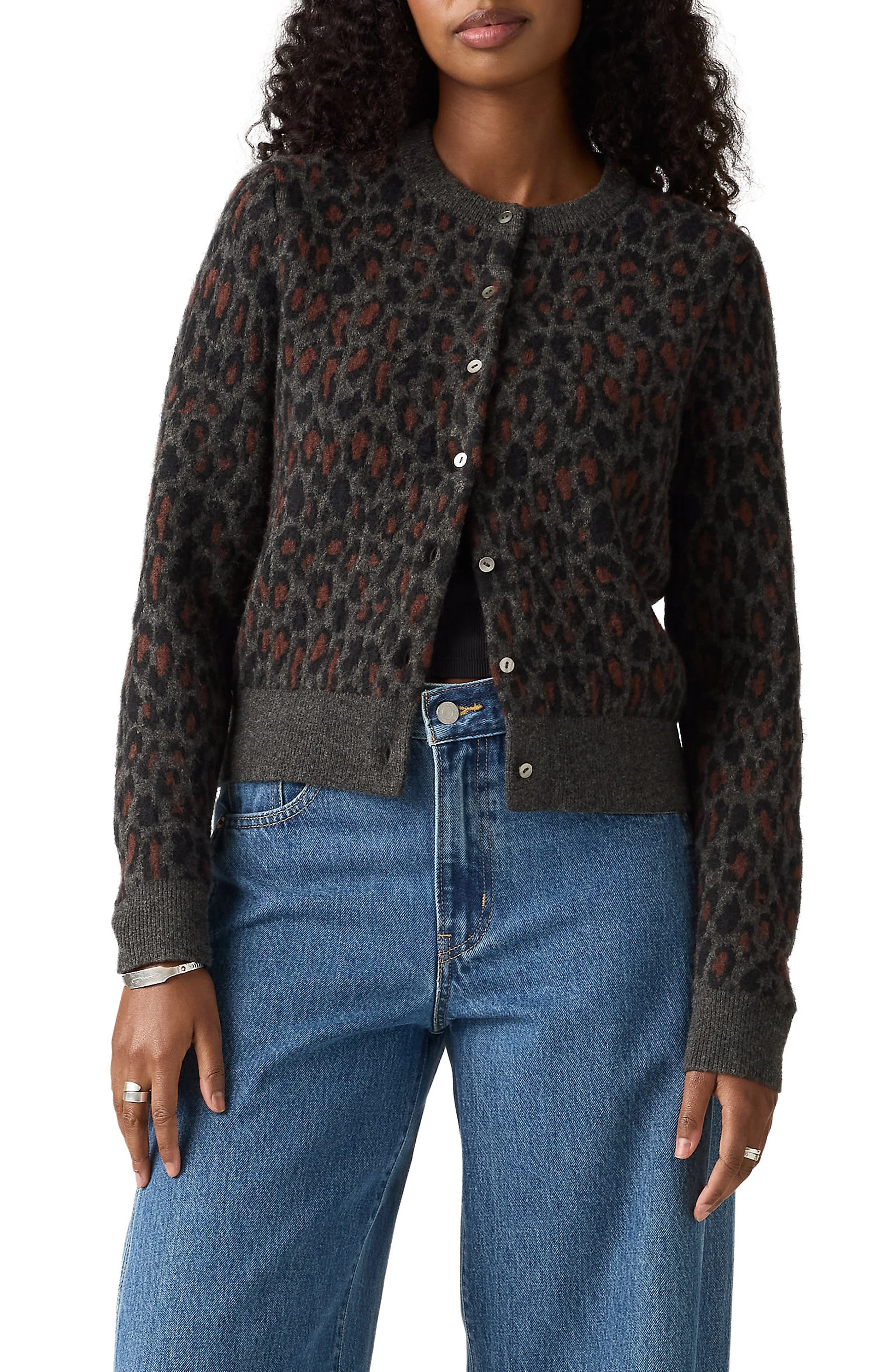 levi's Tara Leopard Cardigan in Dilara Leopard Charcoal at Nordstrom