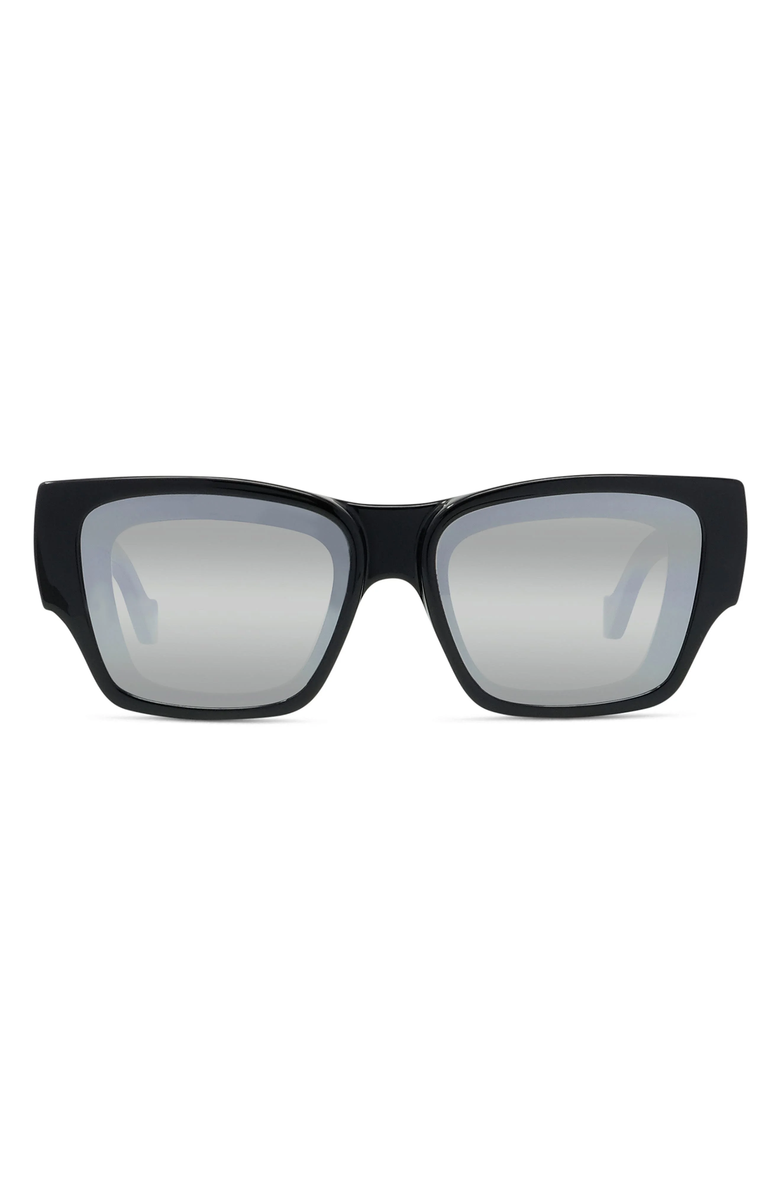 Loewe Signature 56mm Rectangular Sunglasses in Shiny Black /Smoke Mirror at Nordstrom