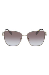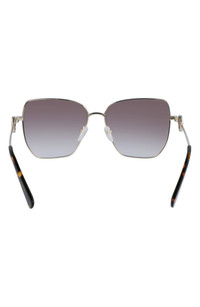 Logo insets at the temples bring signature brand panache to modified rectangular sunglasses fitted with lightweight, scratch-resistant CR-39 lenses. 58mm lens width; 15mm bridge width; 140mm temple length 100% UV protection CR-39 lenses Prescription-compatible Adjustable nonslip nose pads Metal Imported
