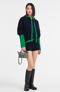 This scaled-down leather version of Longchamp's Le Pliage boasts the same foldaway design that made the bag a worldwide cult favorite. A top carry handle and removable crossbody strap add to its ingenious versatility. Magnetic-snap flap with top zip closure Top carry handle; removable, adjustable crossbody strap Interior wall pocket Structured silhouette with flat base for stability Logo-jacquard lining Leather Imported
