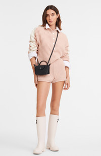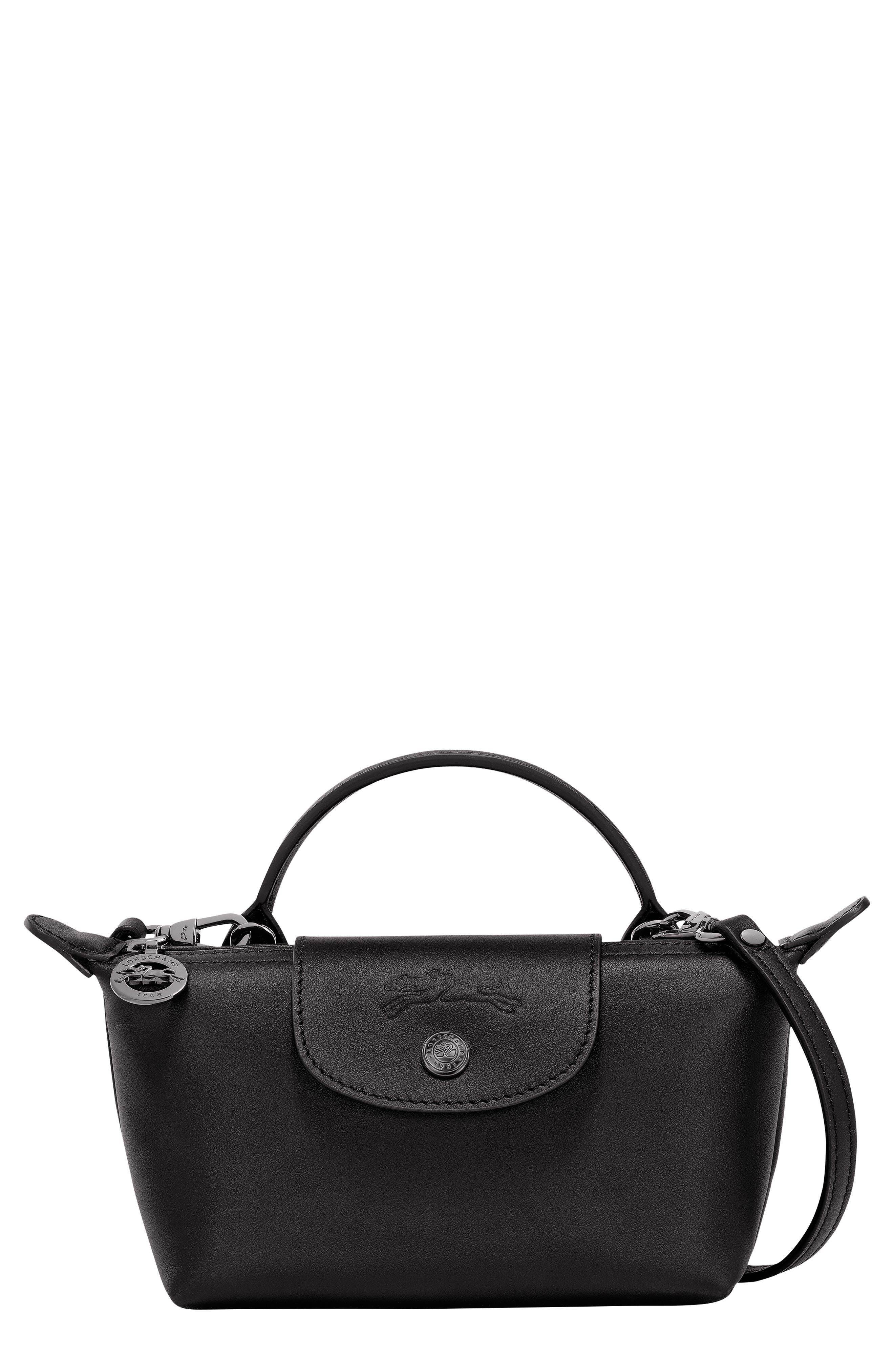 This scaled-down leather version of Longchamp's Le Pliage boasts the same foldaway design that made the bag a worldwide cult favorite. A top carry handle and removable crossbody strap add to its ingenious versatility. Magnetic-snap flap with top zip closure Top carry handle; removable, adjustable crossbody strap Interior wall pocket Structured silhouette with flat base for stability Logo-jacquard lining Leather Imported