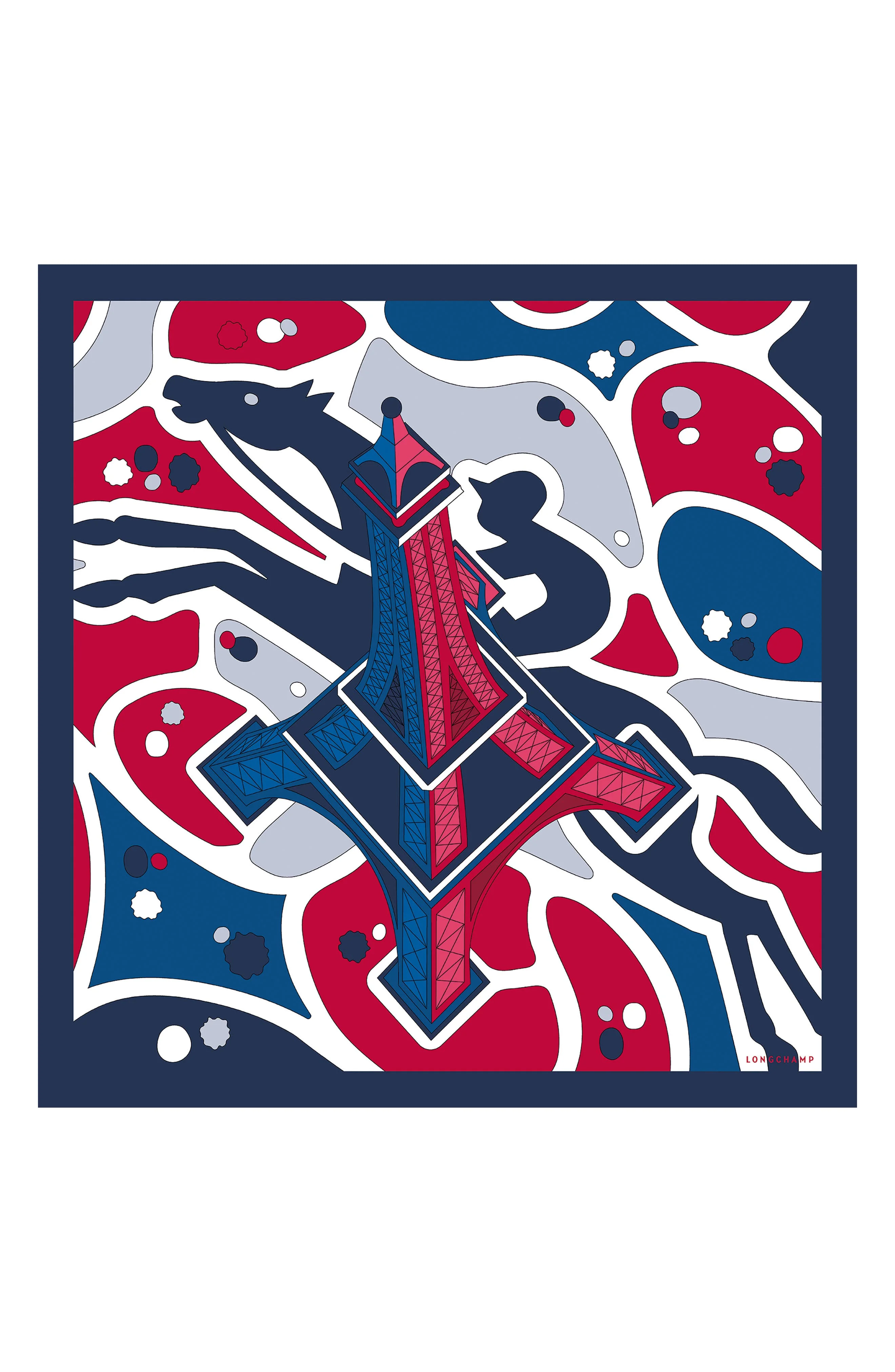 Featuring an enchanting interplay of movement, the Eiffel Tower and the Longchamp horse gracefully emerge from a print that beautifully blends optimism with liberty on this square scarf crafted from luxurious silk. 27 1/2" square 100% silk Spot clean Imported