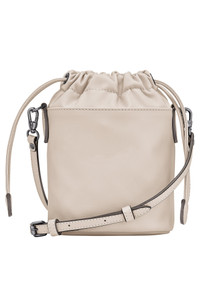Polished logo hardware and rich leather highlight the scaled-down profile of a versatile bucket bag secured with a drawstring closure and suspended from an adjustable shoulder strap. 5 1/4" x 7 1/2" x 4 1/2" 18 3/4"–22 3/4" shoulder strap drop 0.48 lb Drawstring closure Removable, adjustable shoulder strap Exterior snap-flap pocket Interior zip pocket Flat base for stability Logo-jacquard lining Leather Imported