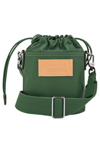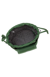 Contrast topstitching and rich leather highlight the scaled-down profile of a versatile bucket bag secured with a drawstring closure and suspended from an adjustable webbing strap. 5 1/4" x 7 1/2" x 4 1/2" 18 3/4"–22 3/4" shoulder strap drop 0.48 lb Drawstring closure Removable, adjustable shoulder strap Exterior snap-flap pocket Interior zip pocket Flat base for stability Logo-jacquard lining Leather Imported