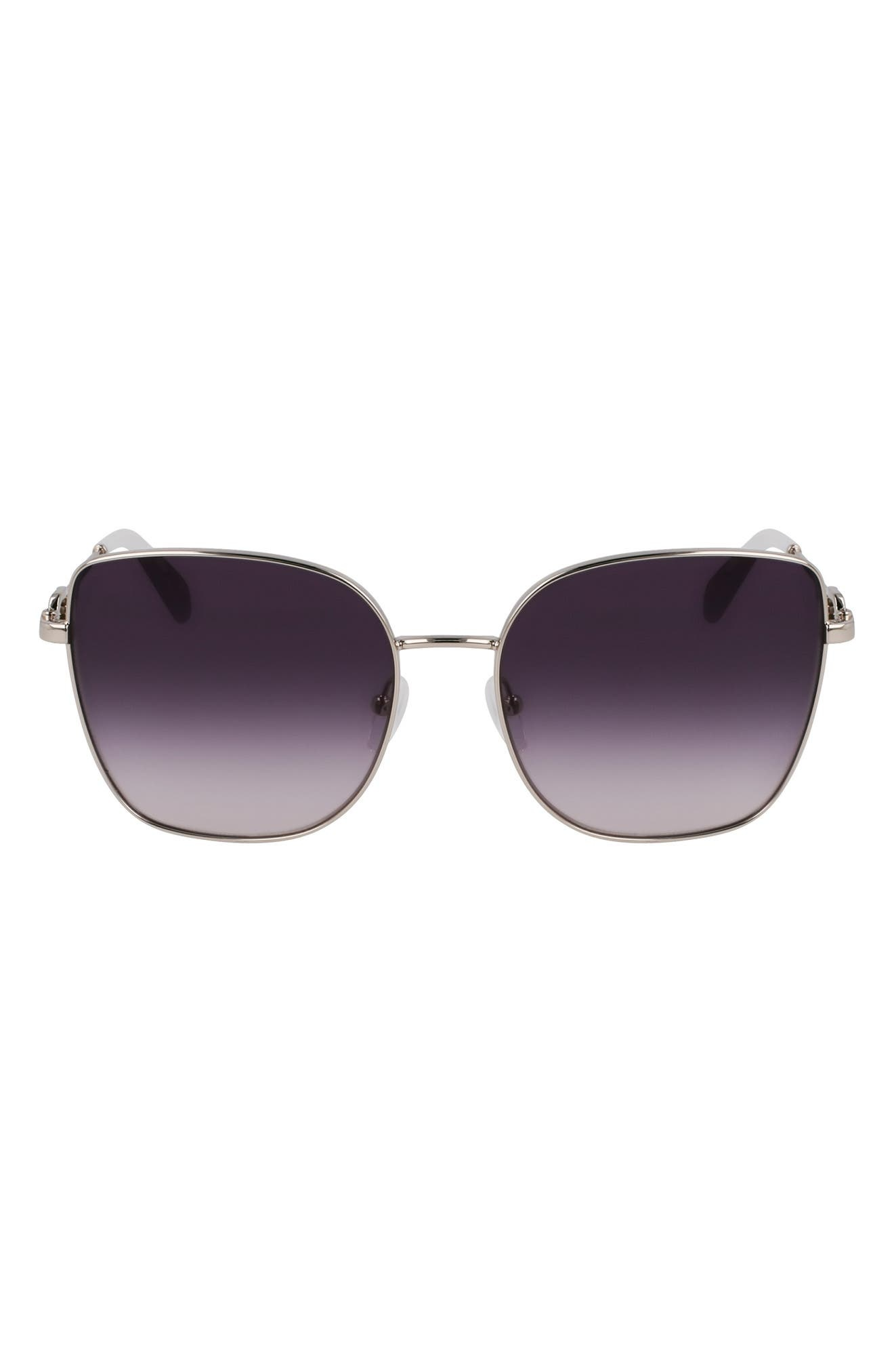 Feel like flying away to your favorite sunny destination in these sleek sunglasses crafted with gradient full-coverage lenses and bold logo cutouts on the temples. 58mm lens width; 17mm bridge width; 140mm temple length 100% UV protection CR-39 lenses Adjustable nonslip nose pads Metal Imported