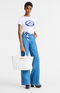 Longchamp Large Le Roseau Cotton Canvas Tote in Ecru at Nordstrom