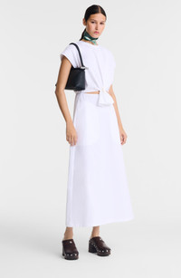 Softy grained leather showcases the streamlined design of a '90s-inspired shoulder bag fitted with a convertible top handle for versatile carry. 10" x 4 1/2" x 3 1/2" 0.68 lb Top zip closure Convertible top carry handle Interior zip pocket; two card slots Structured silhouette with flat base for stability Logo-jacquard lining Leather Imported