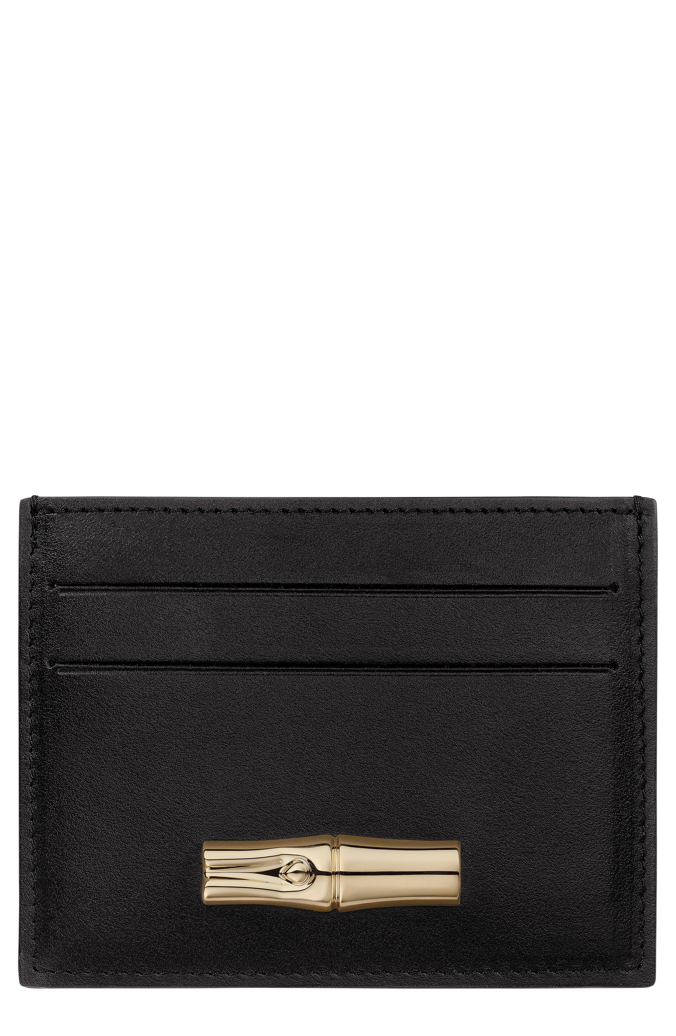 Longchamp Le Roseau Leather Card Case in Black at Nordstrom
