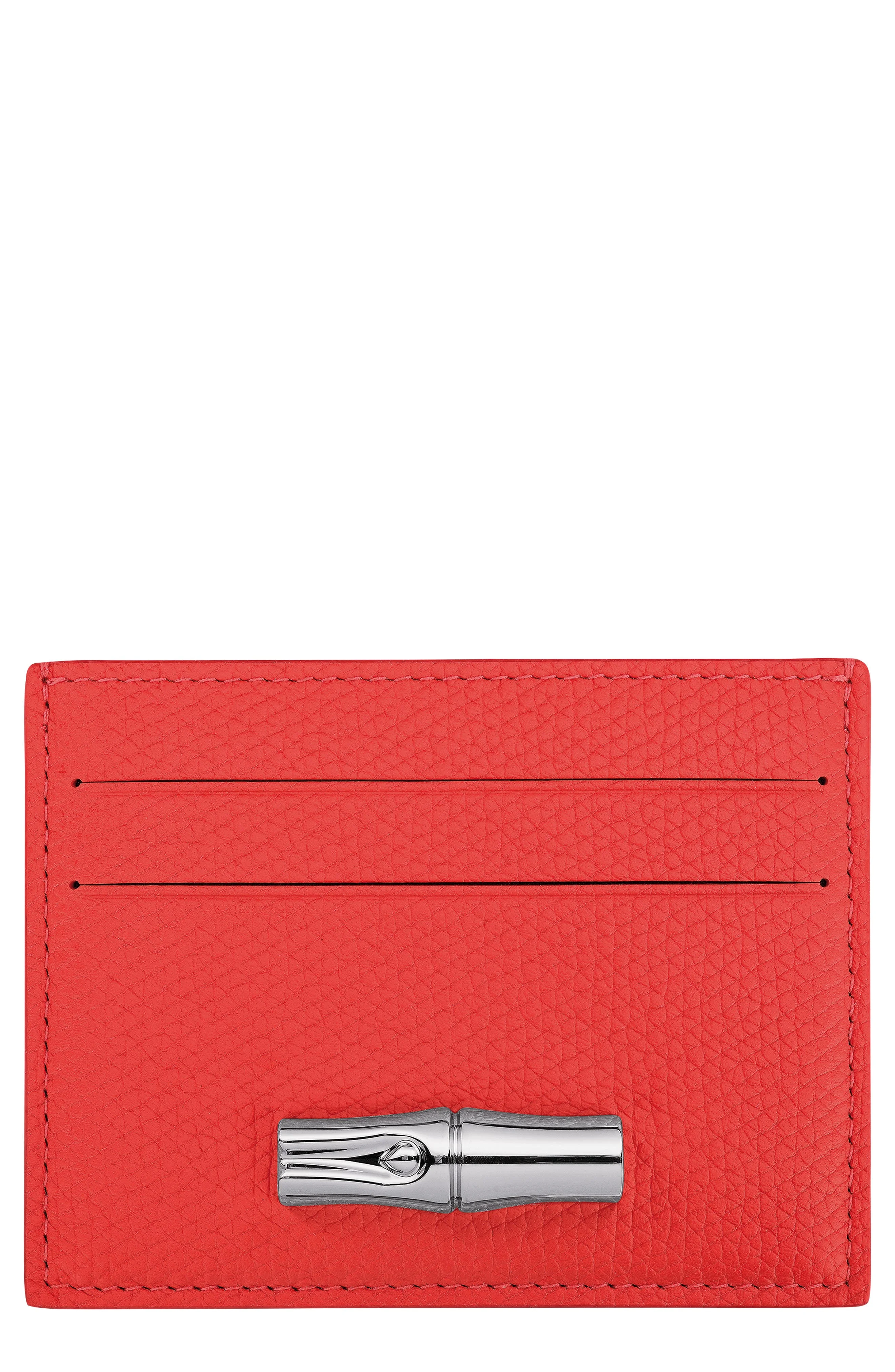 Longchamp Le Roseau Leather Card Holder in Vermilion at Nordstrom