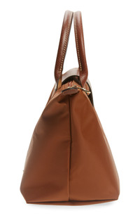 Lightly textured leather borders a durable, water-resistant nylon tote that folds into a small rectangle when not in use, making it perfect for travel. Top zip with snap-flap closure. Interior cell phone pocket. Water-resistant lining. Folds flat for storage. Nylon with leather trim. By Longchamp; imported. Handbags.