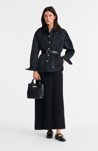 A bamboo-inspired toggle closure stands out against the smooth leather of scaled-down tote fitted with an optional crossbody strap for hands-free wear. 7 3/4" x 7 3/4" x 5 1/4" 3 1/2” handle drop; 20"–23 1/2" crossbody strap drop 1.13 lb Toggle closure Top carry handles; removable, adjustable crossbody strap Interior zip and wall pockets Flat base for stability Logo-jacquard lining Leather Imported