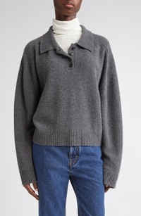 LOULOU DE SAISON Homere Cashmere Polo Sweater in Anthracite Melange at Nordstrom