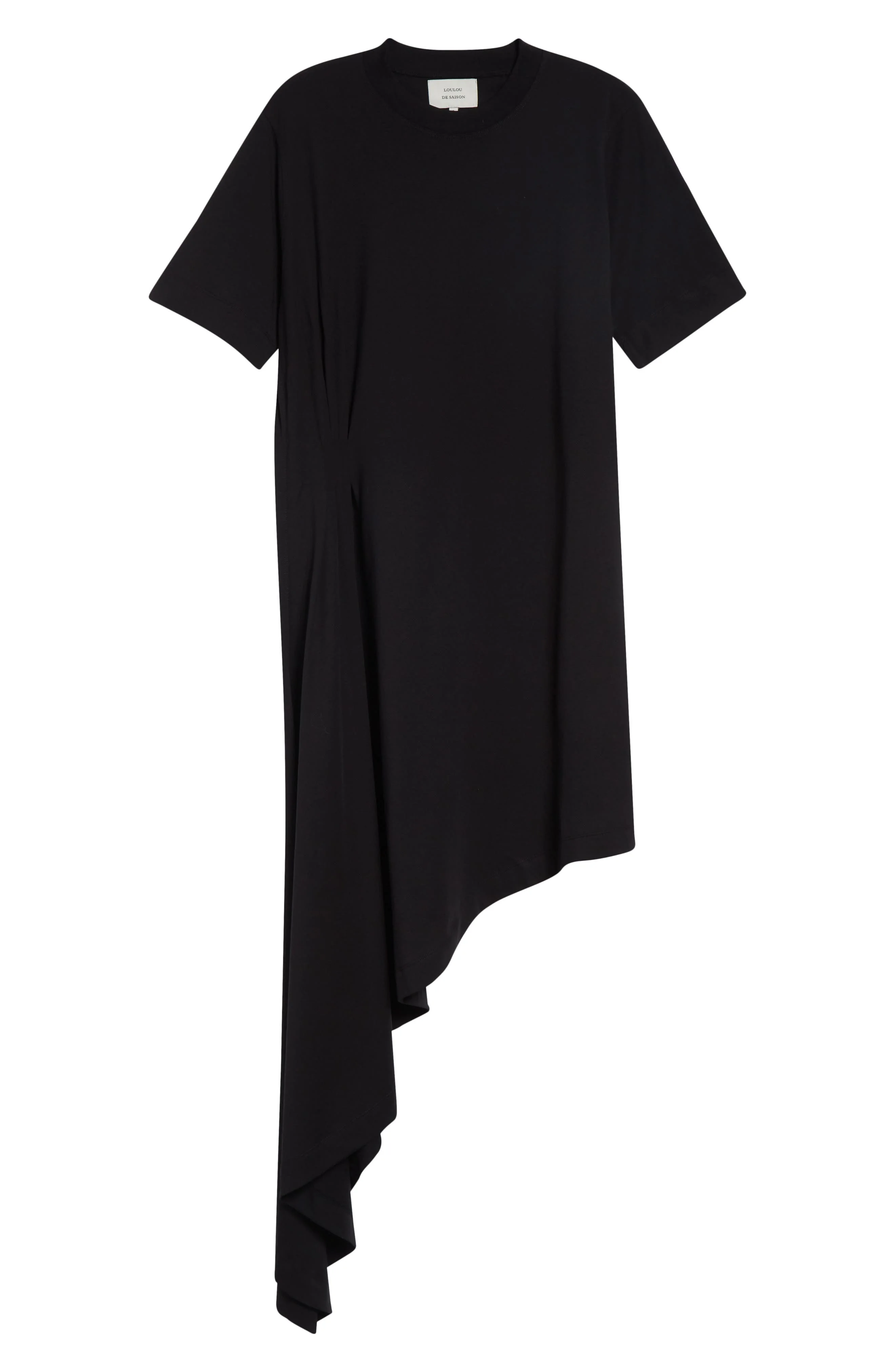 LOULOU DE SAISON Igari Asymmetric Pleated Cotton Knit Dress in Black at Nordstrom