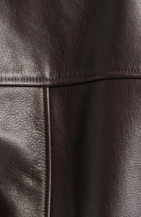 Chloe Harrouche’s signature interplay of ease and edge comes to life in this calfskin bomber jacket with a subtle retro twist. Supple, richly textured leather shapes the relaxed silhouette, with dropped shoulders and elasticized details adding a laid-back charm. The hidden-snap placket and minimalist band collar ground the look in contemporary refinement while echoing the timeless appeal of classic bomber styles. Front zip closure with snap storm placket Band collar Chest welt pocket; front welt pockets Dropped shoulders Elastic cuffs and hem Lined Leather Professional leather clean Made in Turkey Designer Clothing