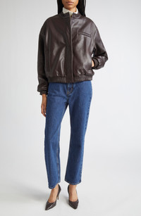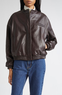 LOULOU DE SAISON Marlow Leather Bomber Jacket in Coffee at Nordstrom