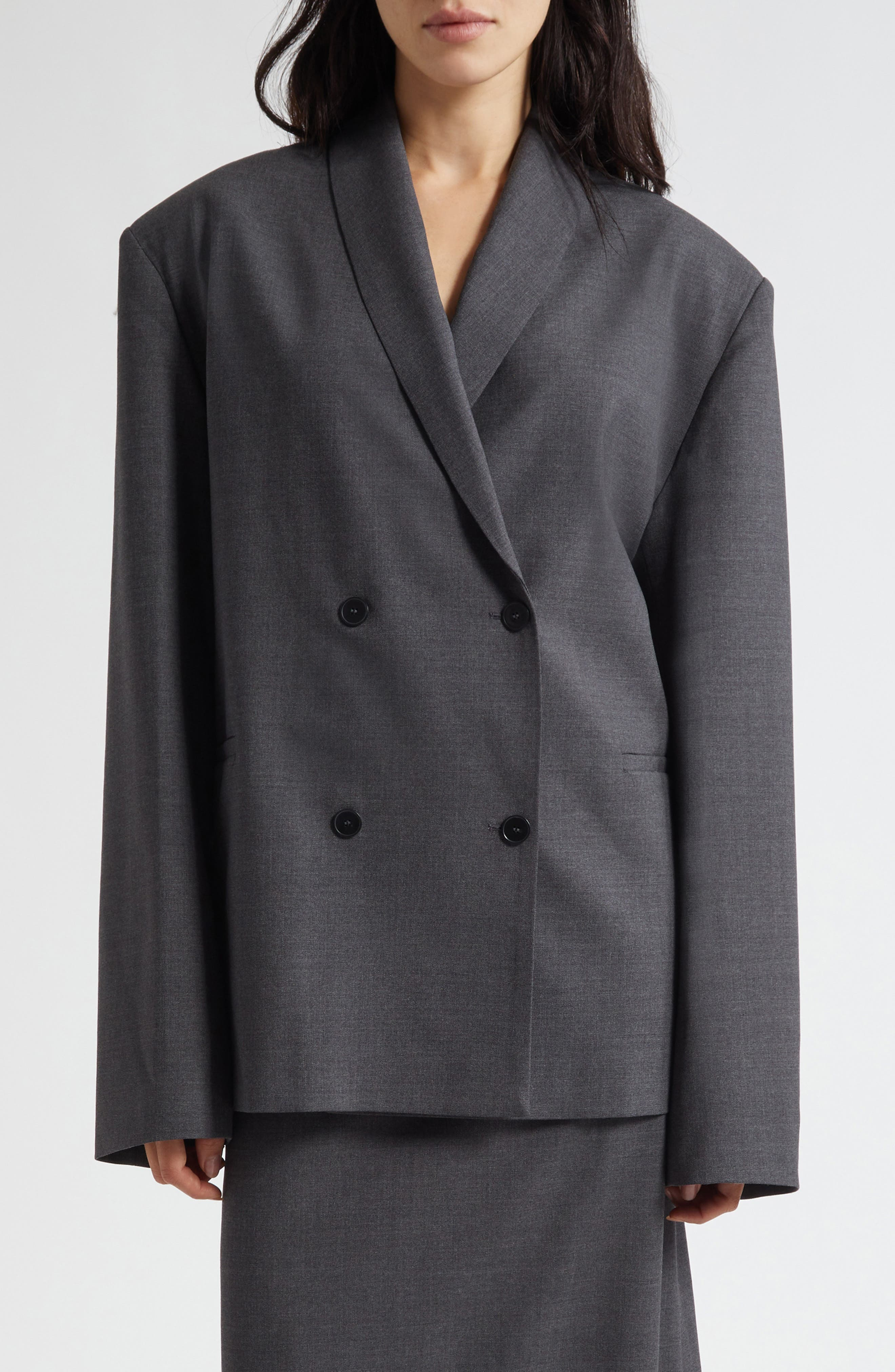 LOULOU DE SAISON Sancia Double Breasted Stretch Virgin Wool Blazer in Anthracite Melange at Nordstro